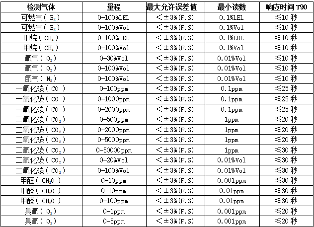 響應(yīng)時(shí)間:T90≤30秒恢復(fù)時(shí)間≤30秒