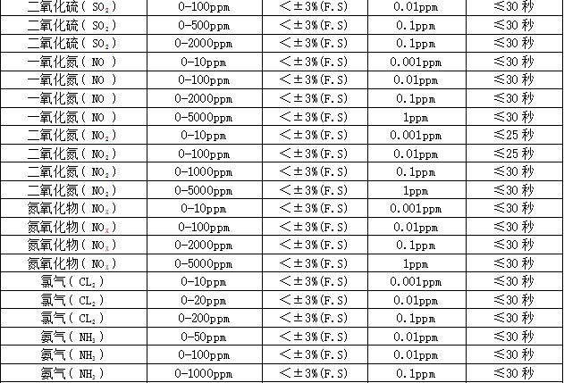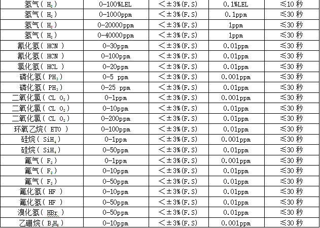 檢測范圍:0~1、10、100、1000、5000、50000、100000ppm、200毫克/升、100%LEL、20%、50%、100%Vol可選,其他量程可訂制。