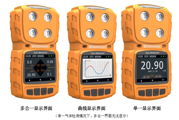 檢測氣體:有毒氣體、氧氣、二氧化碳、易燃易爆類氣體、TVOC等,1~4種氣體隨意組合。選配:溫濕度測量。